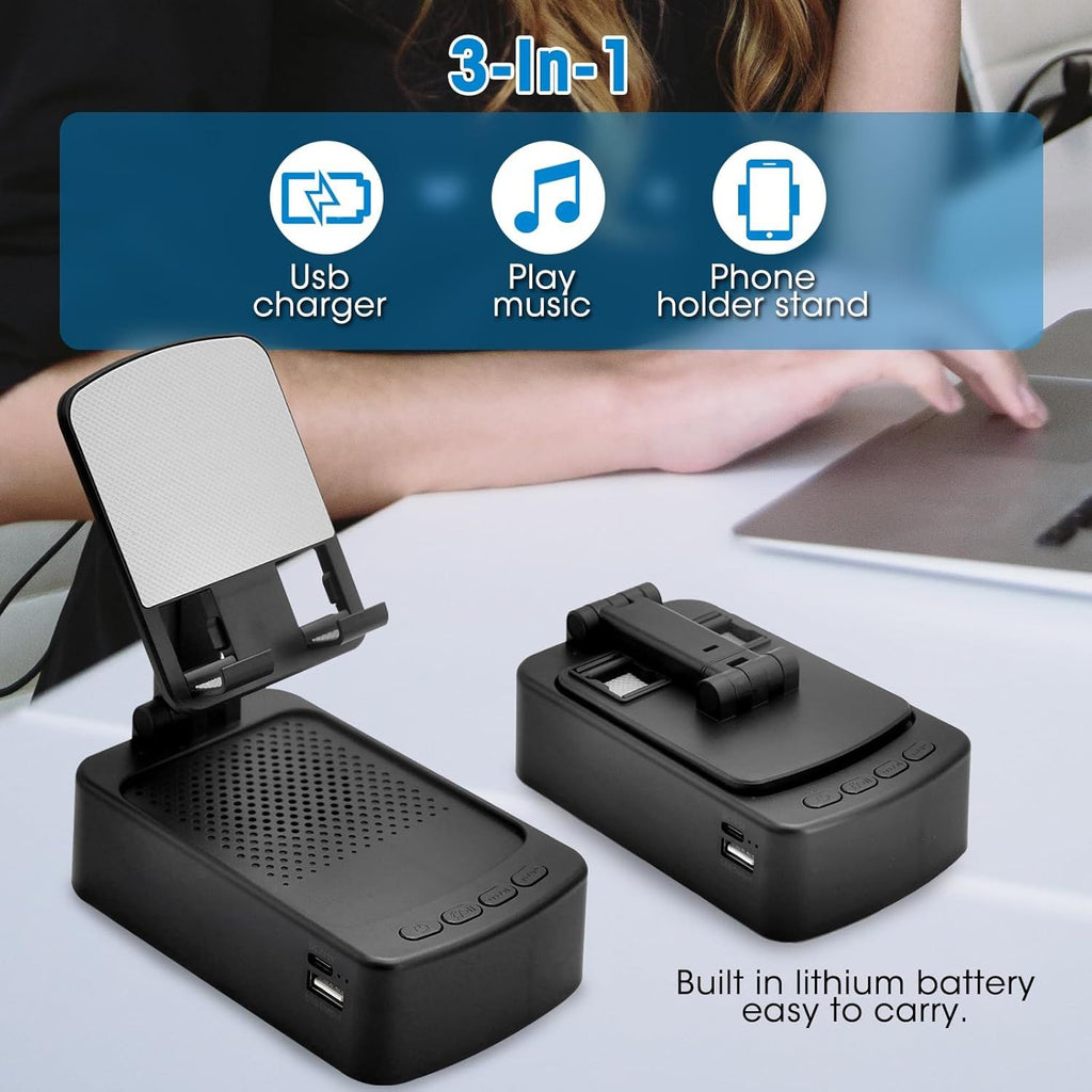 • 4 in 1 Design: This device combines four functions of adjustable cell phone holder, high-fidelity Bluetooth speaker, USB power station and microphone into one device, perfect for video calls, e-learning, watching videos and more.