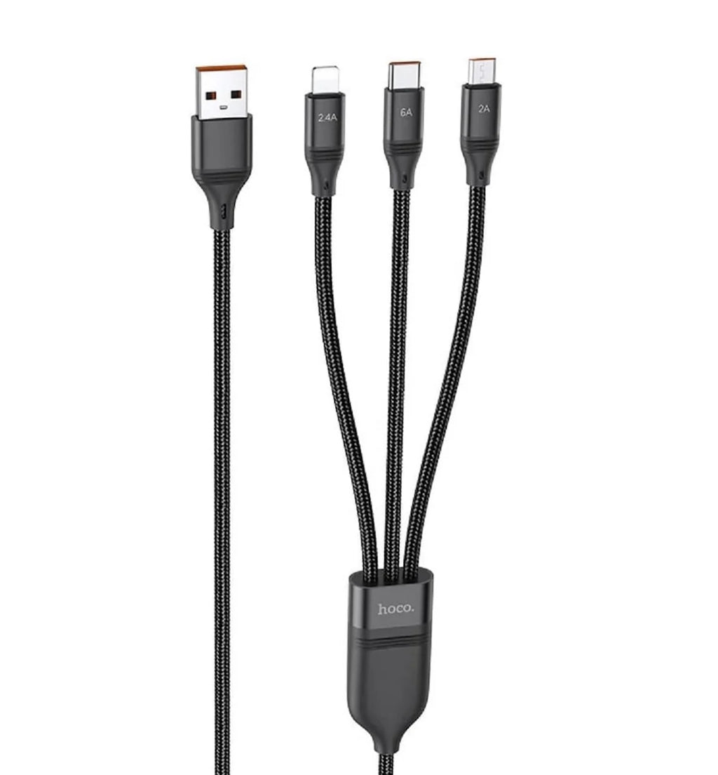 • šŸ”ŒĀ Hoco - 3-in-1 USB Fast Charging Data Cable (U104) | 66WĀ šŸ”Œ